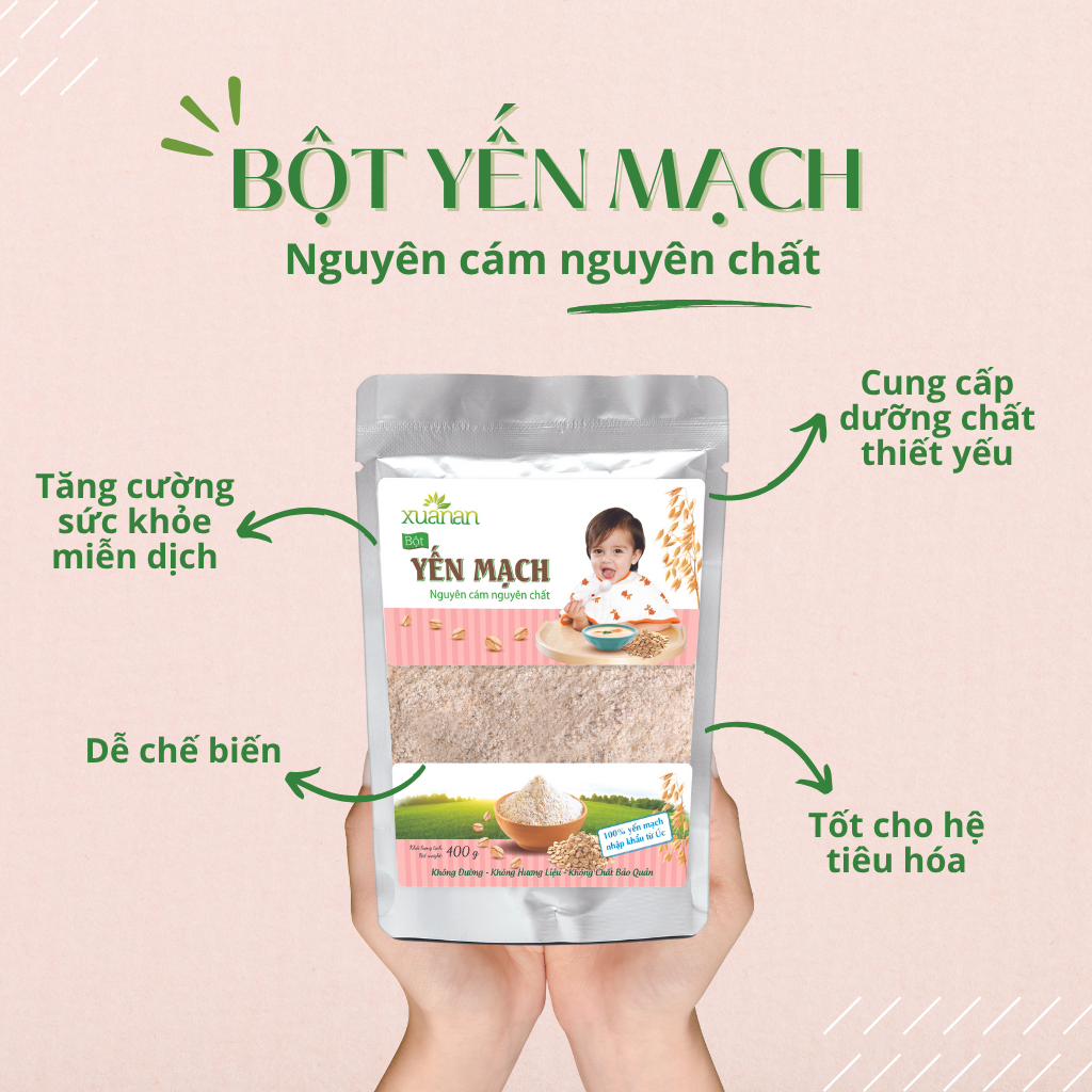 - 100% bột yến mạch nguyên cám nguyên chất.